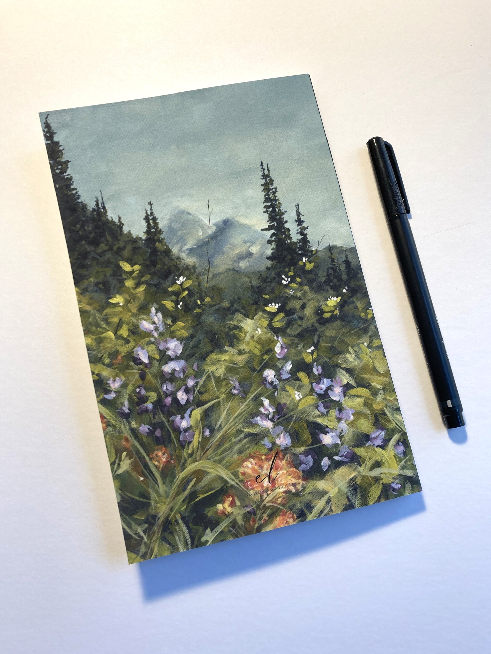 Beautiful 5.25"x8.25" softcover journal featuring my Backcountry painting on both the front and back cover.